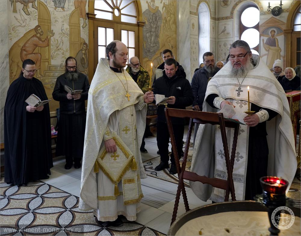 По окончании Божественной литургии всебратственное молебное пение с акафистом священномученику Клименту Римскому возглавил иеромонах Аристарх (Сащенко).