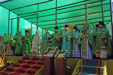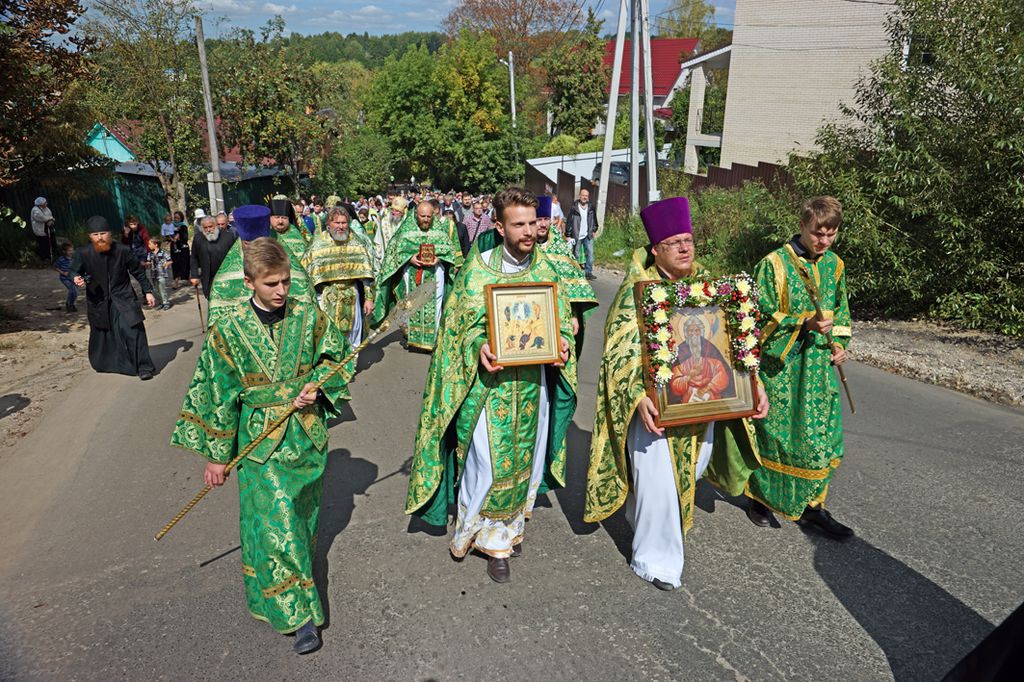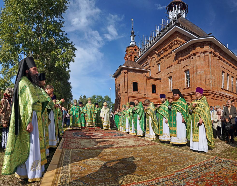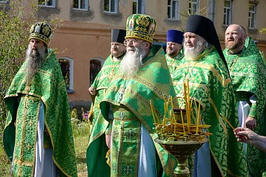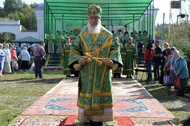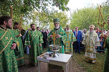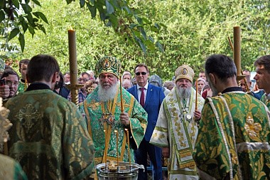 Литургия завершилась крестным ходом на святой источник праведного Лаврентия Калужского, где был отслужен молебен с водосвятием. По преданию, этот источник существует еще со времен святого, и для многих жителей этих мест он являлся «целительным для душ и телес». После освящения архипастыри с молитвой окропили верующих святой водой, призывая на всех благодать Святого Духа и покровительство святого Лаврентия.