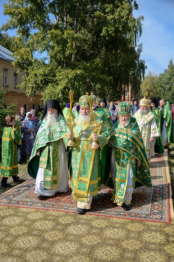 За Божественной литургией архипастырям Калужской митрополии сослужили наместник обители иеромонах Пафнутий (Архипов), наместник Свято-Успенской Тихоновой пустыни архимандрит Тихон (Завьялов), протоиереи Анатолий Рыжков и Андрей Жиганов, секретарь Калужской епархии игумен Мефодий (Пронькин), отцы благочинные, настоятели и клирики приходов и монастырей Калужской, Козельской и Песоченской епархий.
