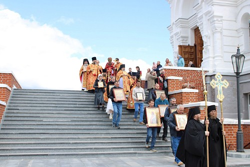 Согласно традиции, по окончании Божественной литургии вокруг Крестовоздвиженского собора обители состоялся крестный ход.