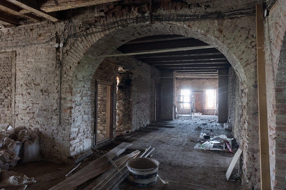 Работа студентов и их руководителя началась с игуменского корпуса, рассказали в фонде. Магистранты выставили нулевой уровень, провели обмеры помещения, зафиксировали его текущее состояние, составили чертежи для дальнейших работ.
