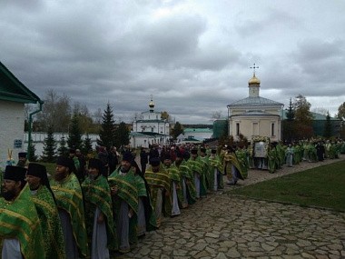 По завершении Литургии был совершен крестный ход вокруг Крестовоздвиженского храма Свято-Николаевского монастыря. У могил наместников и братии святой обители шествие сделало остановку, духовенство и монашествующие исполнили «Вечную память», которую затем сменил пасхальный тропарь: «Христос воскресе из мертвых, смертию смерть поправ…».