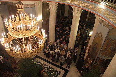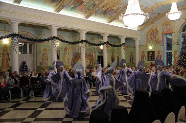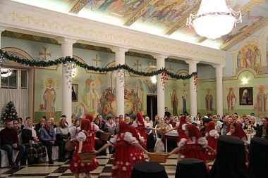 Юрий Николаевич остался в обители и посетил величественное ночное Рождественское богослужение в главном соборе монастыря. Праздник продолжился угощением всех молящихся в большом зале монастырской трапезной и Рождественским представлением девочек-сирот приюта «Отрада».