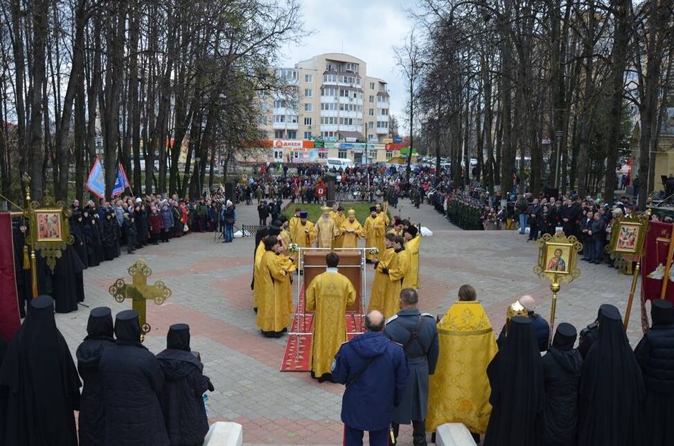 По окончании Литургии состоялся традиционный крестный ход к городскому мемориалу, установленному воинам, погибшим в Малоярославецком сражении, далее – к монументу Славы и к памятнику протоиерею Василию Васильковскому. В крестном ходе участвовали духовенство Малоярославецкого благочиния, жители города и многочисленные гости, приехавшие в город на праздник. Духовенство на каждой остановке крестного хода служило заупокойную литию о воинах, отдавших свои жизни за веру и Отечество в войне с Наполеоном.