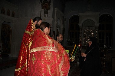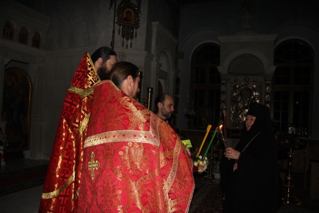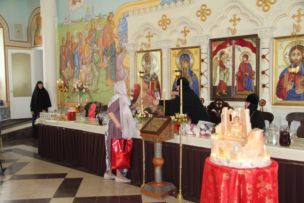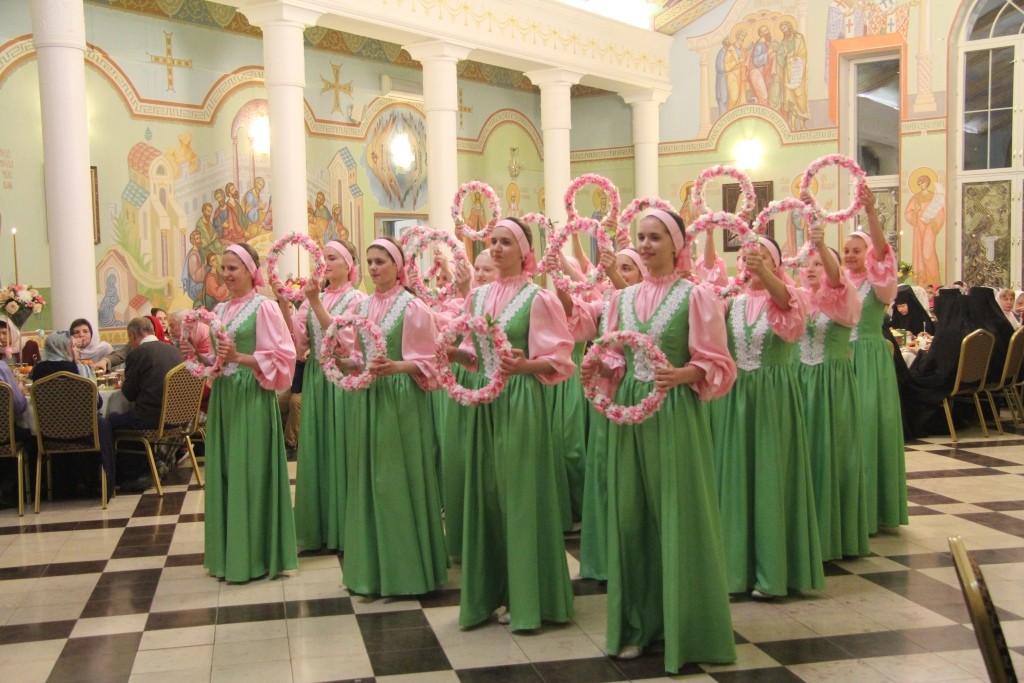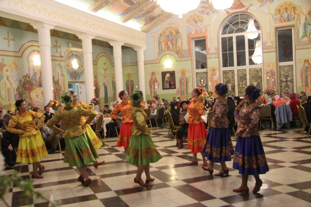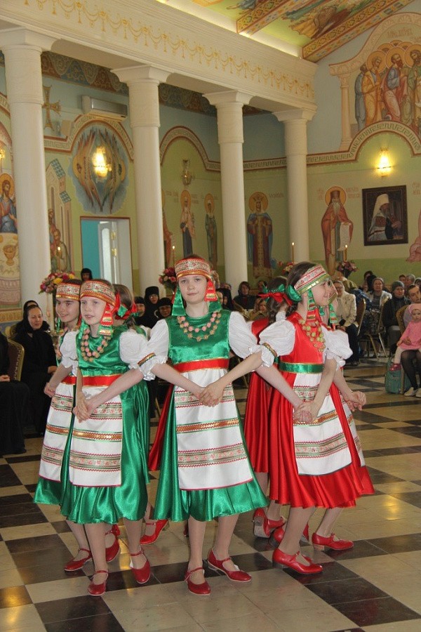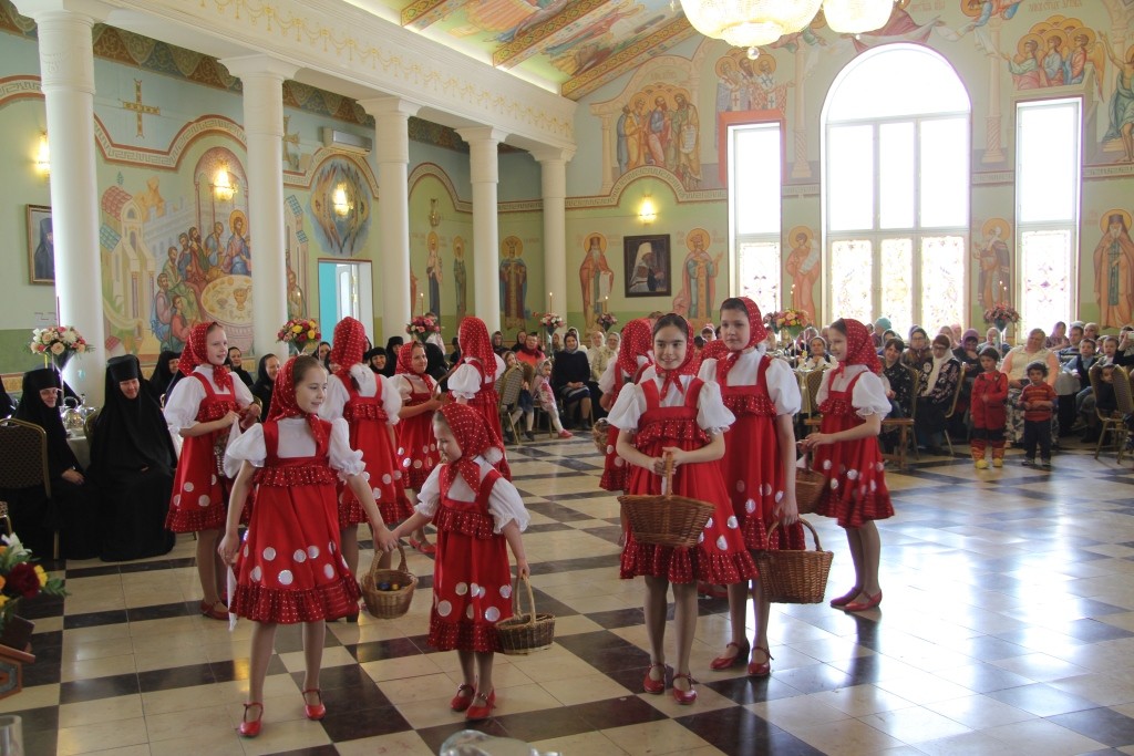 Ночное пасхальное богослужение проходило в переполненном обновленном Никольском соборе, в котором за последний Великий пост прошли реставрационные работы и появились новые святыни. Ночной крестный ход, встреча Благодатного огня у Святых врат монастыря, вход в собор, в котором были потушены все огни, чтобы потом зажечь все светильники от Благодатного огня, радостные крики «Христос воскресе!» в залитом светом храме и затем ночное разговение и первый пасхальный праздничный концерт в большой трапезной обители, закончившийся вручением подарков всем участникам праздника. Утром после поздней Литургии и первого пасхального крестного хода прошли праздничный обед и второй за день концерт воспитанниц детского православного пансиона «Отрада». Оба концерта получились по-настоящему пасхальными, веселыми, яркими, порадовавшими новыми танцами и новыми костюмами – удивительной красоты «царскими» платьями в древнерусском стиле и «казачьими» красочными нарядами для танца «Деревенские посиделки».