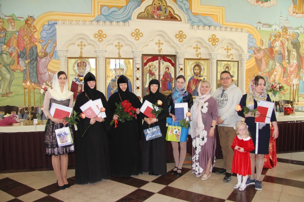 Поблагодарив всех преподавателей ЦПМ и Л.С. Череховскую как директора ЦПМ настоятельница Свято-Никольского Черноостровского женского монастыря игумения Николая вручила ей букет цветов и подарок и предложила всем собравшимся завершить торжество благодарственной молитвой.