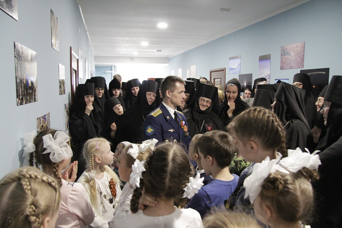 Завершая праздник в Большой трапезной Свято-Никольского Черноостровского женского монастыря, настоятельница обители игумения Николая (Ильина) произнесла духовное слово о значении праздника Победы для нашей страны как победы Духа и пригласила участников торжества в Духовно-просветительский центр «София» на открытие выставки фотографий космонавта-испытателя С.Н. Рыжикова, сделанных из космоса.