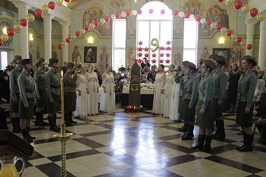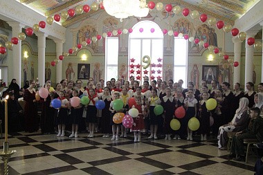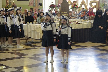 Вечером для гостей, сестер монастыря, игумении Николаи, матушек настоятельниц из разных епархий, собравшихся в Черноостровской обители в этот день, воспитанницы детского православного пансиона «Отрада» подготовили еще один подарок – концерт в Большом зале Духовно-просветительского центра «София». Программа концерта состояла из песен о войне и Победе, народных танцев и музыкальных сценок.