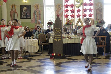 Праздничная трапеза, на которую были приглашены все прихожане и гости монастыря, завершилась праздничным представлением воспитанниц детского православного пансиона «Отрада», посвященным Великой Отечественной войне. К этому представлению в обители всегда особенно готовятся – в прошлом году, например, спектакль-концерт был посвящен детям войны.