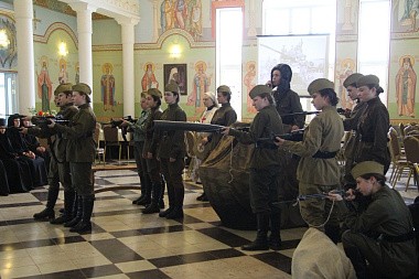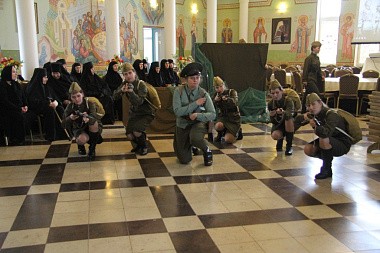 По завершении спектакля настоятельница Свято-Никольского Черноостровского женского монастыря игумения Николая произнесла слово о духовном смысле сложившейся в мире ситуации пандемии и самоизоляции, после которой прогнозируется всемирный экономический кризис. Напомнив слова схиархимандрита Михаила о том, что на вопросы, будет ли война и когда будет война, старец всегда отвечал, что война уже давно идет, матушка Николая пожелала насельницам обители быть настоящими наследницами мужества и истинной и самоотверженной евангельской любви, которой обладали наши защитники и герои, потому что именно это и стало основой для их Великой Победы и только это и может стать основой духовной победы и для монахов сегодняшних.