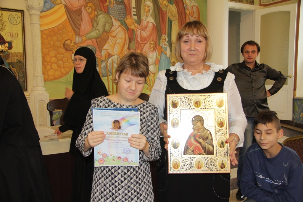 В заключительном слове настоятельница Свято-Никольского Черноостровского женского монастыря отметила, что эти дипломы и призы служат не для того, чтобы показать, что кто-то хуже или лучше выступает, а должны быть стимулом к тому, чтобы больше работать, больше стремиться проявлять свои таланты – то, что дал Бог.