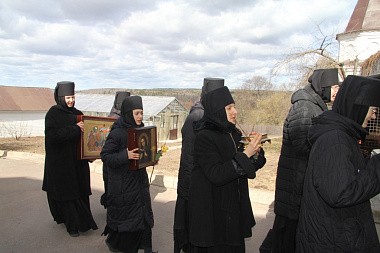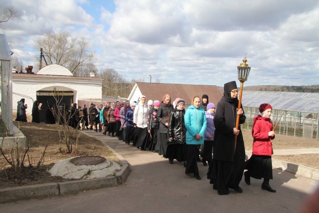 12 апреля 2020 года, в Вербное воскресенье, крестный ход получился особенно масштабным, так как к сестрам монастыря присоединились воспитанницы детского православного пансиона «Отрада». После окропления святой водой всей территории монастыря, включая хозяйственный двор, приют «Отрада», источник святителя Николая в овраге у стен обители, крестный ход завершается в Никольском соборе коленопреклоненным чтением молитвы во время распространения вредоносного поветрия.