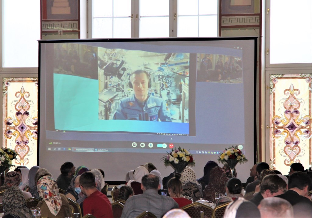 Самым впечатляющим поздравлением праздника было поздравление через видеоконференцсвязь с Международной космической станции космонавта С. Н. Рыжикова. На большой экран, видный всем присутствующим в зале, с экрана компьютера было выведено изображение из одного из отсеков Международной орбитальной космической станции. Множество приборов, которые используются для всевозможных экспериментов в области физики, химии, материаловедения, физиологии человека и др. научных направлений окружали космонавта, выразившего самые теплые поздравления всем участникам праздника, а также искреннюю любовь к одному из самых милостивых святых Вселенской Церкви. По признанию Сергея Николаевича святитель Николай присутствует в его жизни и в космосе – как невидимо, помогая в непростом служении, так и в виде небольшой копии Великорецкой иконы святителя Николая, ежедневно вместе с ним 16 раз совершающей крестный ход вокруг планеты.
