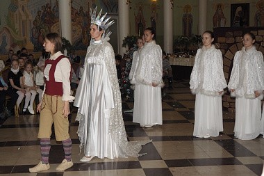 По окончании Божественной литургии в Никольском соборе монастыря, где довелось присутствовать многим из участников праздника, в большой трапезной был организован праздничный обед, завершившийся представлением по сказке Г.-Х. Андерсена «Снежная королева».