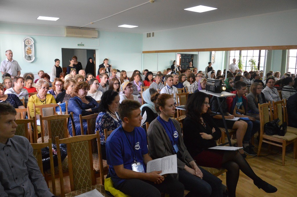 По окончании трапезы все гости были приглашены в актовый зал НОУ «Православная гимназия» на территории Свято-Никольского Черноостровского женского монастыря. Работу дискуссионной площадки № 4 «Поколение-2020: духовно-нравственные ценности, жизненные планы и перспективы» открыли настоятельница игумения Николая и Уполномоченный МИД России по вопросам прав человека, демократии и верховенства права К.К. Долгов.