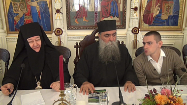 На встречу также был приглашен схимонах Иларион, игумен келии Св. Харлампия Нового Скита Святой Горы Афон. В своем выступлении на тему «Хранение монашеских традиций на Святой Горе Афон» он коснулся общих вопросов, стоящих сегодня перед мужскими и, особенно, женскими монастырями. В заданных вопросах и ответах на них были освещены темы, касающиеся молитвы, послушания, очищения сердца, правильного отношения к аскезе, была затронута проблема взаимоотношений послушников с духовниками, приведшими в монастырь, о роли игумении в монастыре, о роли духовника в женском монастыре, о правильном отношении к откровению помыслов, о цели монашеской жизни. Было отмечено, что смысл аскезы не во внешнем делании (пост, поклоны), а в цели спасения, ради которой они совершаются. В настоящее время мы не можем нести те подвиги, какие совершали Отцов предшествующих столетий, но очищение сердца через послушание – это часть вневременной монашеской традиции – такой вывод сделал докладчик.