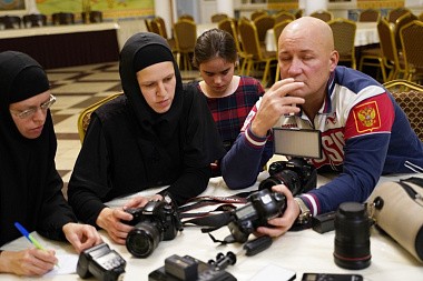 В мастер-классе помимо сестер, которым по послушанию доводится фотографировать мероприятия монастыря, приняла участие одна из воспитанниц пансиона «Отрада», уже заинтересовавшаяся этом видом искусства, и собирающаяся в будущем учиться в Центре православных медиа РГСУ при монастыре.