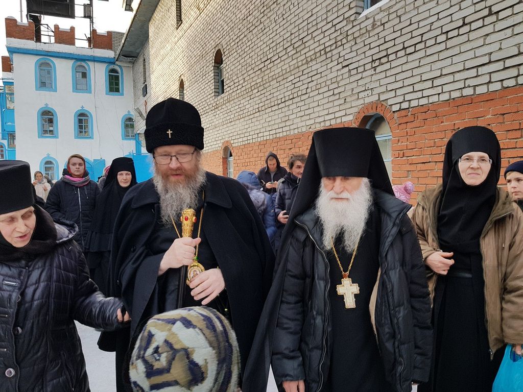 Архиереям сослужили священники Томской митрополии, духовенство монастыря, в т.ч. секретарь Томской епархии архимандрит Иосиф (Еременко), игумен Серафим (Тарабыкин), наместник Преображенского монастыря с. Волок игумен Матфей (Черевикин).