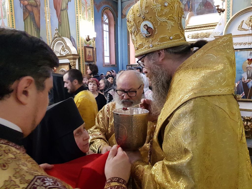 За богослужением молилась настоятельница Свято-Никольского монастыря игумения Ирина (Селиверстова) с сестрами, братия Преображенской обители, многочисленные прихожане и гости праздника.