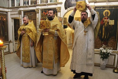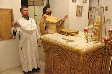 Его Высокопреподобию сослужили штатный клирик обители иерей Аркадий Елькин и насельник Богородичного Пантелеимонова Щегловского мужского монастыря г. Тулы иеродикон Евлогий (Харитонов).