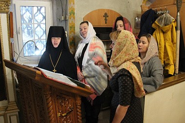 По окончании Божественной литургии служащее духовенство поздравило настоятельницу монастыря игумению Алексию (Бажину) с 20-летием монашеского пострига, вручив ей богородичную просфору и возгласив «Многая лета».