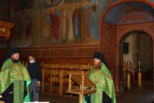 В этом году празднование в монастыре проходило без присутствия гостей и паломников. Богослужение в соборе Рождества Богородицы совершили насельники обители: архимандрит Иосиф (Королев), иеромонах Аникита (Жуков) и иеродиакон Илия (Рыжкин).