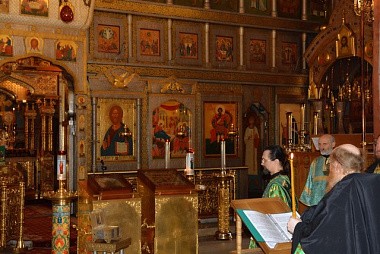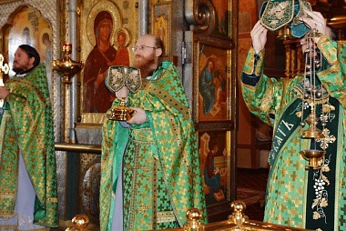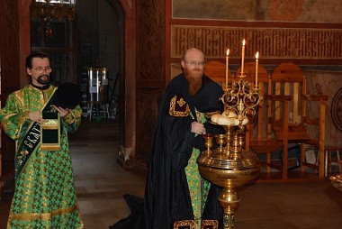 За Божественной литургией после сугубой ектении была вознесена молитва, чтомая во время распространения вредоносного поветрия, а на заупокойной ектении были помянуты предки преподобного Пафнутия – блаженные Мартин, Иоанн и Фотиния.
