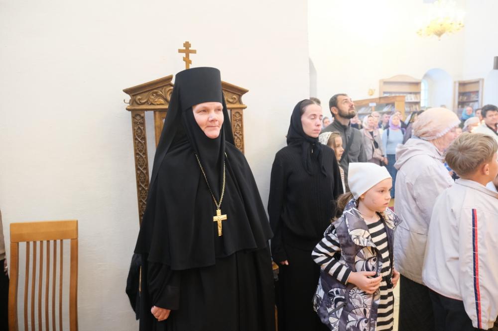 За богослужением молились настоятельница Покровского монастыря игумения Екатерина (Кожевникова), насельницы монастыря, воспитанницы монастырского приюта, многочисленные прихожане и паломники.