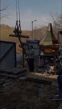 В Свято-Серафимовском мужском монастыре на о. Русском Владивостокской епархии идет подготовка к монтажу центрального шатра и купола колокольни.