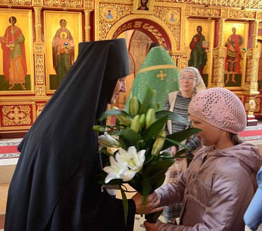Также настоятельницу обители поздравили игумения Мария и монахиня Неонилла от лица всех сестер Аносина и Шостьенского монастырей и прихожане монастыря, поскольку день Ангела игумении – это семейный праздник всей обители, как сказала однажды матушка Мария (Солодовникова).
