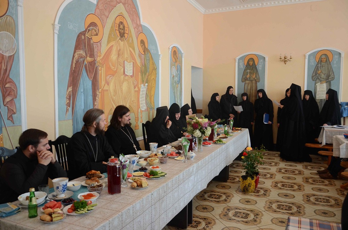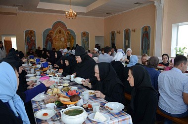 Затем всем гостям и прихожанам был предложен праздничный обед в монастырской трапезной с уставны