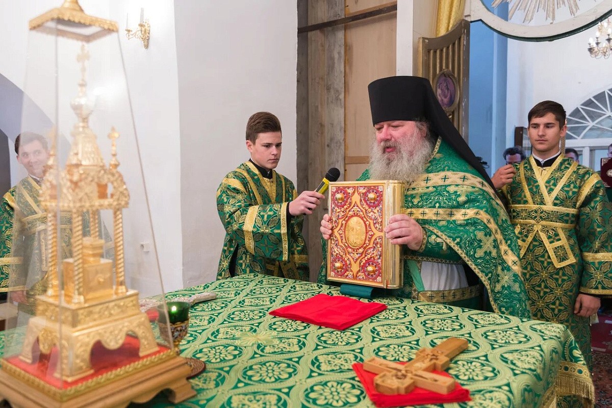 Затем было совершено молебное славление преподобному Макарию Унженскому перед ракой с его святыми мощами.