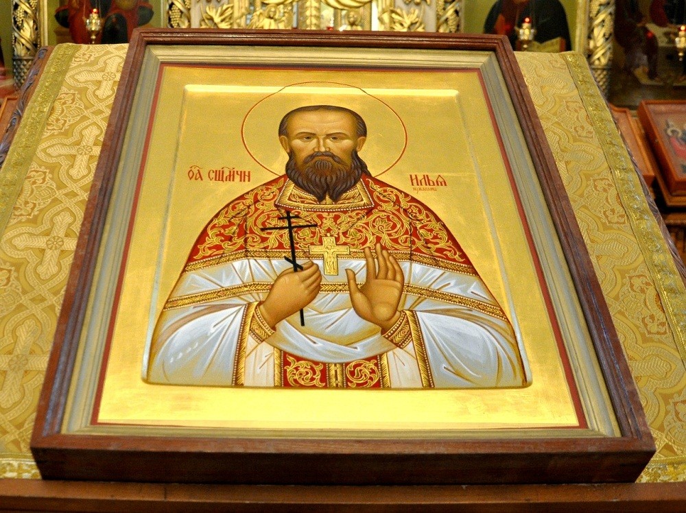 По окончании Литургии перед честным образом священномученика Илии (Измайлова) был совершен молебен. После чего наместник монастыря обратился к молящимся с пастырским словом.
