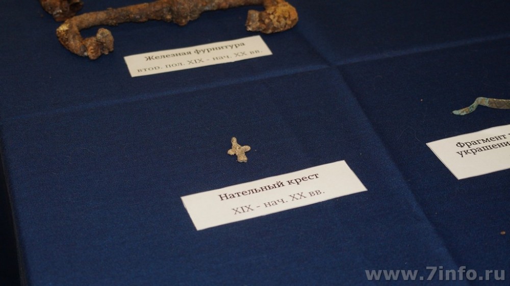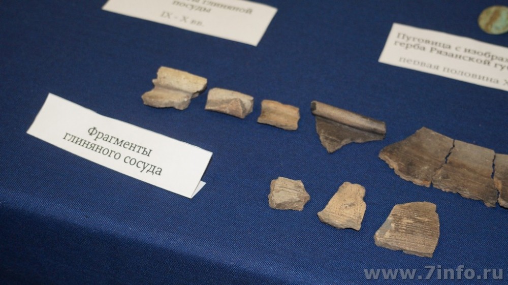 Среди ценных находок директор Рязанской археологической экспедиции Василий Конов выделил фрагмент сосуда средневековой эпохи, фрагмент женского браслета XIII века, коллекцию из 16 пуговиц с изображением герба Рязанской губернии, относящуюся к первой половине XIX века, обломки стеклянного сосуда, предположительно, слезницы, или ельницы, XIX века и нательный крест XIX–XX веков, принадлежавший ребенку .