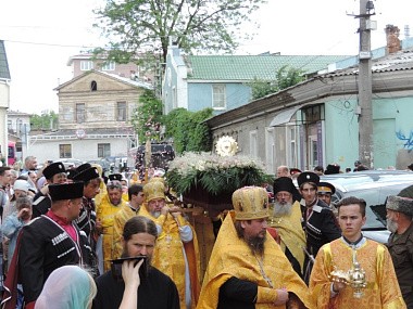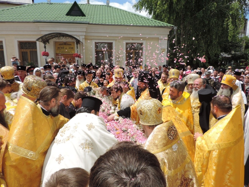 Завершилось празднование традиционным крестным ходом. Святые мощи были обнесены вокруг стен монастыря по улице, усыпанной лепестками роз. Когда святые мощи вновь внесли и поставили в центр Свято-Троицкого собора, богомольцы долго шли, чтобы поклониться великому крымскому святителю в день его памяти.