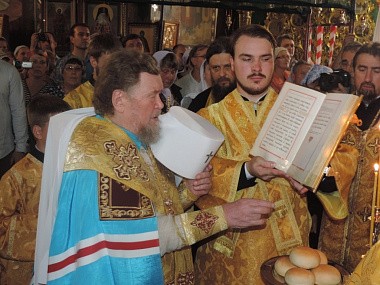 Накануне торжеств, 10 июня, всенощное бдение с чтением акафиста святителю Луке возглавил митрополит Лазарь в сослужении клириков собора и симферопольского духовенства.