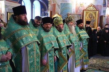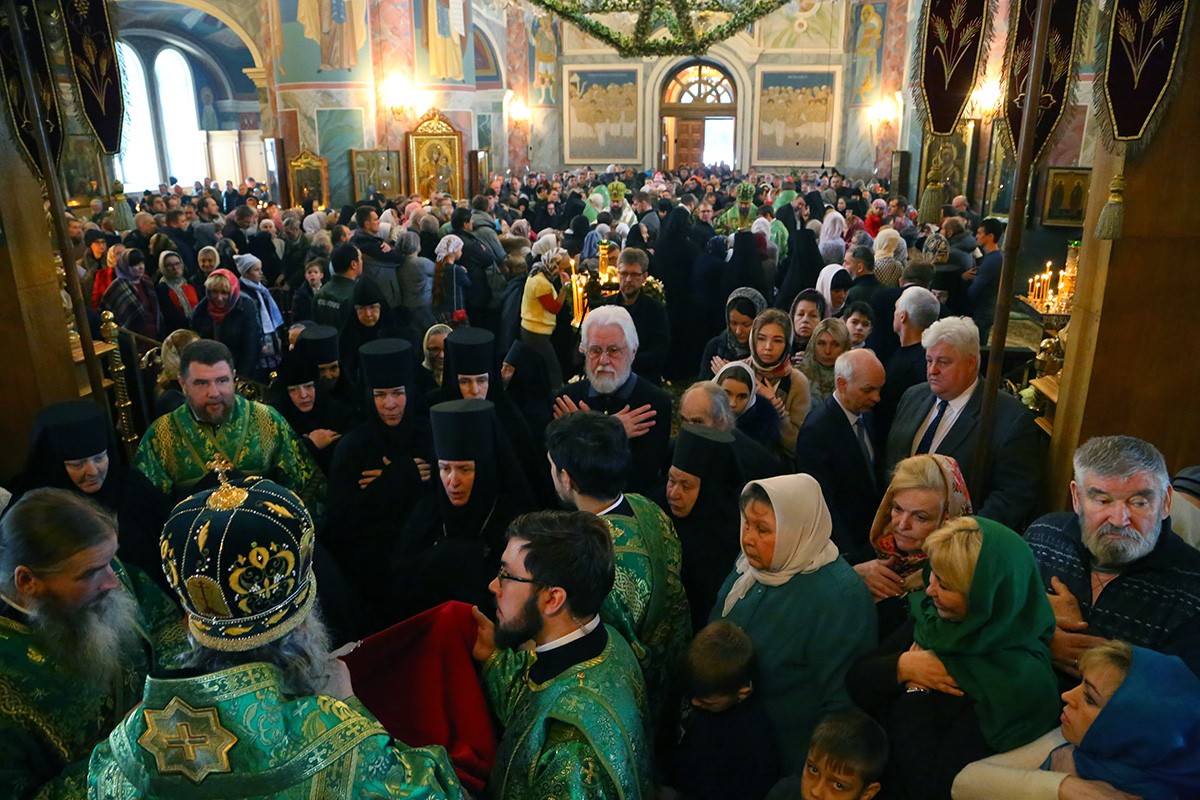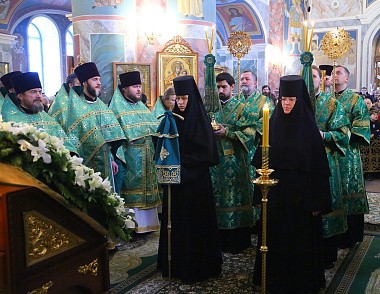 В храме вместе с многочисленными паломниками и прихожанами молились настоятельница Свято-Троицкого Серафимо-Дивеевского монастыря игумения Сергия (Конкова) с сестрами обители, настоятельница Макарьевского Свято-Троицкого Желтоводского монастыря игумения Михаила (Орлова), настоятельница Покровской Свято-Введенской Островной пустыни игумения Феврония (Маратканова), настоятельница монастыря в честь Преподобномученицы Великой княгини Елисаветы г. Калининграда игумения Елисавета (Кольцова), настоятельница Выксунского Иверского монастыря игумения Антония (Миронова), настоятельница Николаевского Георгиевского Абабковского монастыря игумения Никона (Желякова), настоятельница Дальне-Давыдовского монастыря игумения Руфина (Тарасенко), настоятельница Арзамасского Свято-Николаевского монастыря игумения Филарета (Шевченко), настоятельница Крестовоздвиженского монастыря в дер. Быдреевке игумения Иулиания (Петрова), настоятельница Спасского монастыря Симбирской епархии игумения Сергия (Вотрина), настоятельница Свято-Троицкого Островоезерского монастыря г. Ворсмы монахиня Серафима (Беляева), настоятельница архиерейского подворья Арзамасского Новодевичьего Алексия, человека Божия, монастыря монахиня Феогноста (Гончарова), настоятельница архиерейского подворья Мало-Пицкого монастыря во имя Иконы Божией Матери «Всех скорбящих Радость» инокиня Филарета (Андрейко), настоятельница Нижегородского архиерейского подворья храма в честь Святых Кирилла и Мефодия инокиня Алипия (Андрейко).