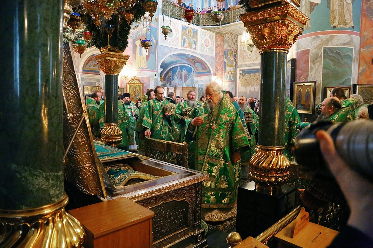15 января 2018 года в Свято-Троицком Серафимо-Дивеевском женском монастыре молитвенно почтили день памяти прп. Серафима Саровского. Богослужения состоялись в Троицком соборе обители, где пребывают мощи празднуемого святого.
