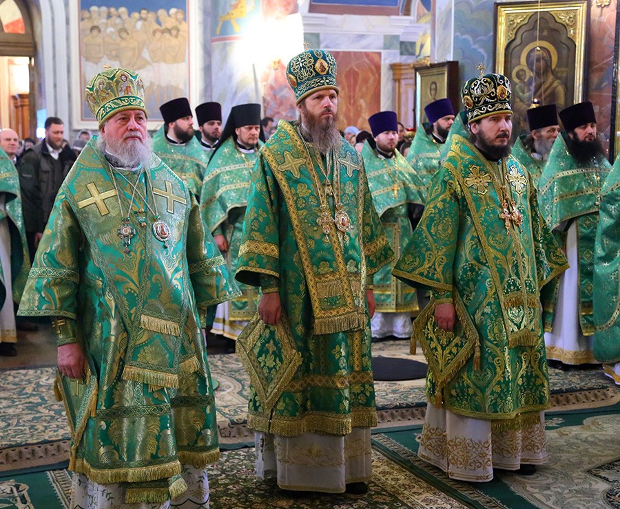 Его Высокопреосвященству сослужили: митрополит Нижегородский и Арзамасский Георгий; митрополит Валентин (Мищук); митрополиты Йошкар-Олинский и Марийский Иоанн, Иваново-Вознесенский и Вичугский Иосиф, Пензенский и Нижнеломовский Серафим; архиепископ Филарет (Карагодин); епископы Краснослободский и Темниковский Климент, викарий Нижегородской епархии; Балахнинский Илия, Канашский и Янтиковский Стефан, Выксунский и Павловский Варнава, Альметьевский и Бугульминский Мефодий, Лысковский и Лукояновский Силуан, Сердобский и Спасский Митрофан, Лидский и Сморгонский Порфирий, Великоустюжский и Тотемский Тарасий, викарий Чебоксарской епархии; епископ Мариинско-Посадский Игнатий; секретарь Нижегородского епархиального управления протоиерей Сергий Матвеев; настоятели мужских монастырей и благочинные округов Нижегородской епархии, а также клирики Нижегородской и других епархий Русской Православной Церкви.