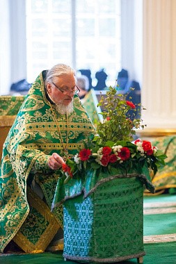 Всенощное бдение и Божественную литургию в Свято-Троицком соборе монастыря возглавил наместник обители епископ Кронштадтский Назарий в сослужении братии монастыря в священном сане.