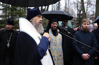 «Сей дивный уголок на новомосковской земле является келией Пресвятой Госпожи и Владычицы нашей Богородицы, устроенной молитвами, сердечной любовью и разделенными вместе с вами трудами блаженной памяти здесь погребенного отца архимандрита Лавра, – обратился к предстоящим с архипастырским словом владыка Алексий. – Год минул с того дня, когда Господь, всё творящий и строящий ко спасению и вечному благу рода человеческого и каждого из нас с вами, восприняв труды своего верного слуги и раба, именно в день предпразднства Благовещения Божией Матери Ее молитвами и Ее руками открыл для него входы в те обители, которые уготовал Господь прежде сложения мира для любящих Его.