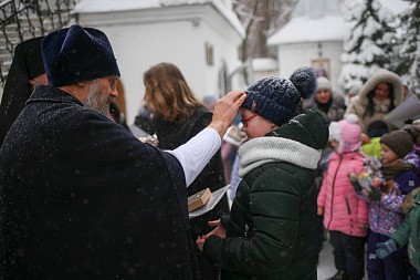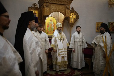 По окончании богослужения были совершены славление святителю Василию Великому и окропление молящихся святой водой.