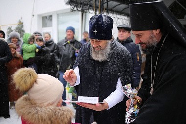 Поздравить детей с праздником пришел митрополит Тульский и Ефремовский Алексий, пожелавший участникам праздника жить в любви к Богу, сохраняя в сердцах тепло и радость Рождества: «Есть замечательная и добрая традиция украшать монастырские елочки, которые радуют нас зимой и летом одним зеленым цветом, игрушками, но не купленными в магазине, а нашими руками и творчеством осуществленные, получая из этого добрый опыт, чтобы затем укрепить его в серьезный жизненный навык о том, что "блаженнее давати, нежели принимати" (Деян. 20:35), чтобы солнышко человеческого тепла никогда не гасло в наших сердцах и чтобы его радостноносные лучи несли свет жизни, братолюбия, мира и согласия в окружающий нас с вами мир».