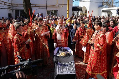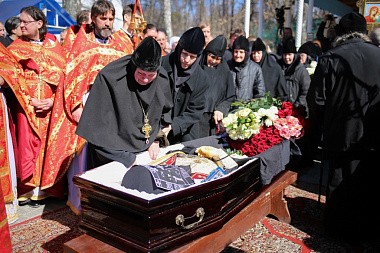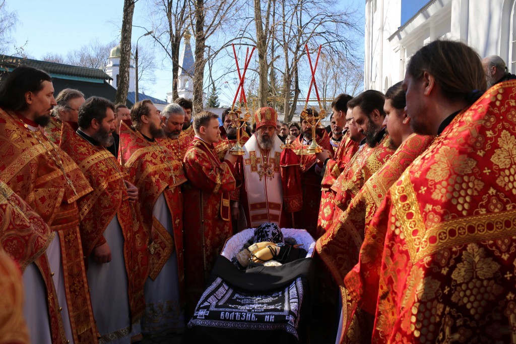 Чин отпевания и погребения совершил митрополит Тульский и Ефремовский Алексий, просивший Всевышнего упокоить в селениях праведных душу архимандрита Лавра, верного раба и служителя Своего, прошедшего по страданиям со Спасителем и встретившим Пасху с воскресшим Господом.