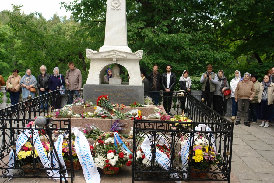 В этот день в обитель прибыло множество верующих почтить память Александра Сергеевича и возложить цветы на его могилу.