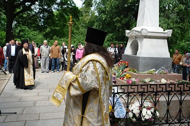 В день рождения великого русского поэта эконом монастыря иеромонах Василий (Бурков) отслужил заупокойную литию на его могиле.