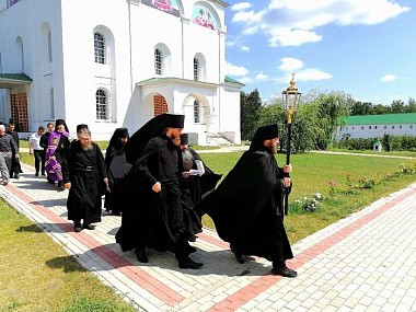 В Успенском храме обители Его Преосвященству сослужили клирики монастыря.