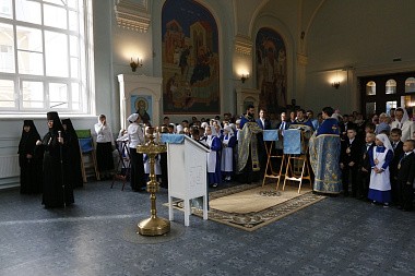 Молебен на начало учения отроков в школьном Введенском храме возглавил клирик монастыря, духовник школы иерей Алексий Красавин в сослужении иереев Дионисия Харина и Сергия Ладанова. По традиции пел хор воспитанников школы.