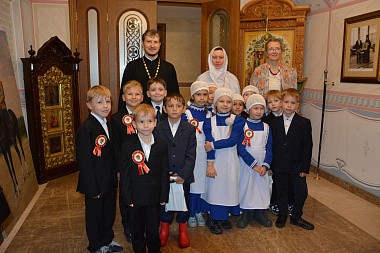 За богослужением молились настоятельница обители, директор школы игумения София (Силина) с сестрами, глава Московского района Владимир Николаевич Ушаков, председатель Попечительского совета школы Анатолий Александрович Турчак, представители вузов, учащиеся, родители, педагоги и попечители школы.
