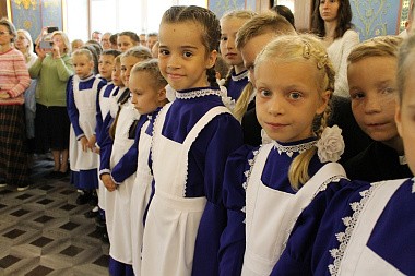 На торжественной линейке было зачитано послание митрополита Санкт-Петербургского и Ладожского Варсонофия воспитанникам и педагогам школы.